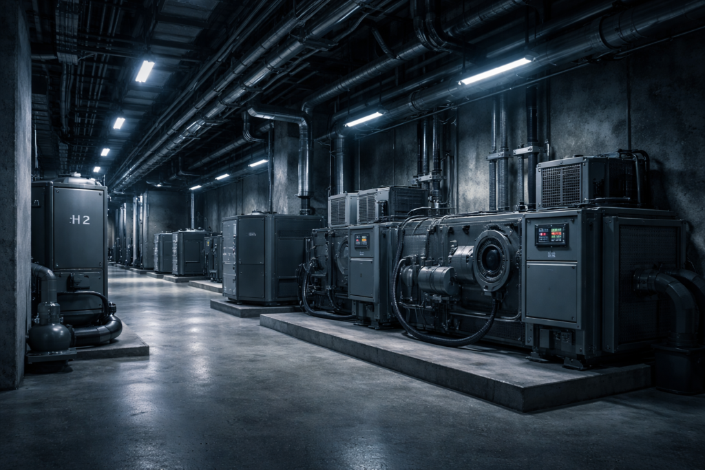 Compact hydrogen power systems enable on-site energy generation with reduced dependence on fuel convoys and external supply chains. Systems are designed for hardened, underground, and access-restricted installations.